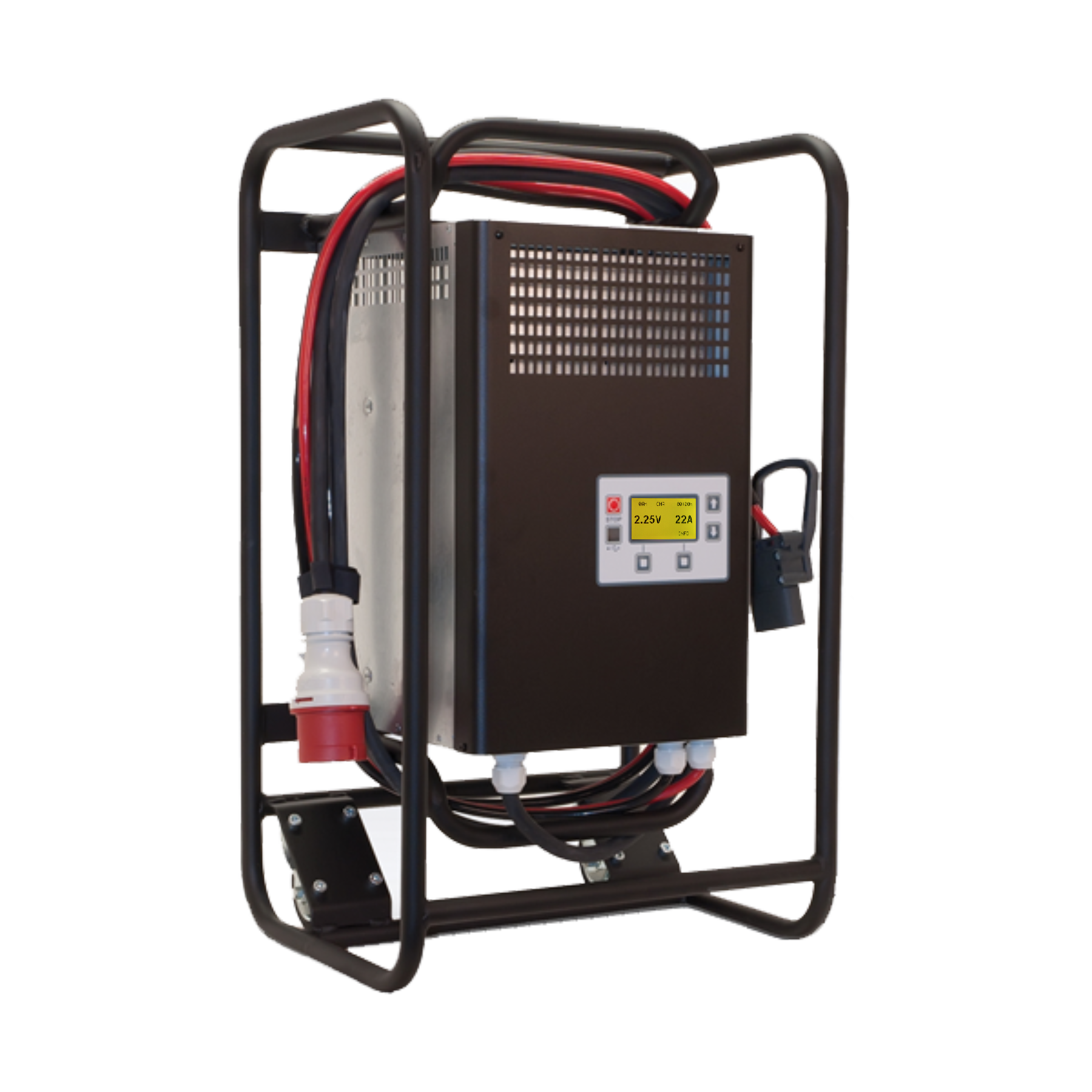 Stand with wheels for easy handling. Particularly suitable for service chargers.
